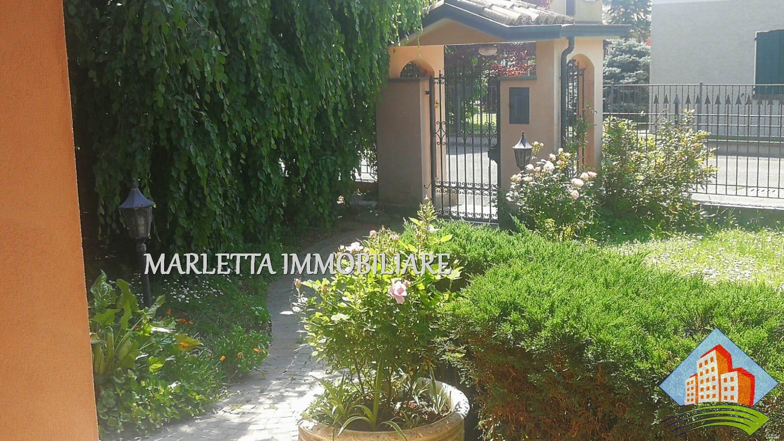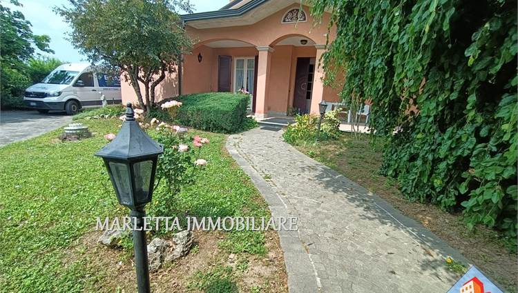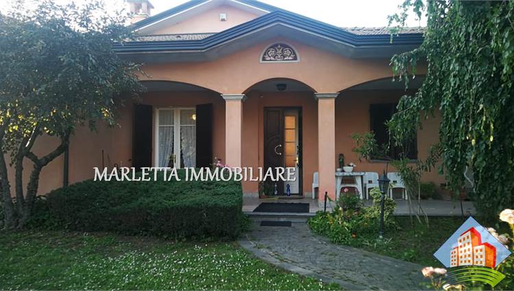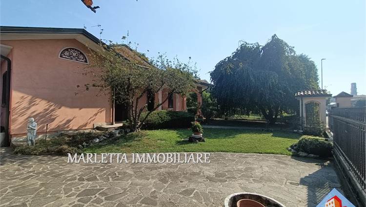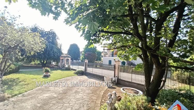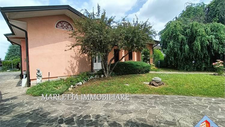 Villa unifamiliare con florido giardino piantumato libera su 4 lati, in centro paese ma in zona tranquilla e ben servita. L'abitazione con ambienti spaziosi e luminosi è ben suddivisa. Dall'ingresso a piano terra si accede direttamente all'ampio soggiorno doppio con camino ventilato, vi sono finestra e porta finestra, cucina abitabile con uscita sul bellissimo e grande portico frontale. Con porta separata dal soggiorno, un disimpegno conduce nella zona notte con due camere matrimoniali, una delle quali dotata di porta finestra con affaccio su terrazzino, vista giardino, esposto a ovest, bagno padronale finestrato con vasca, lavabo rivestito in marmo-resina più comodo ripostiglio. Dal soggiorno, tramite due gradini, si accede ad altro disimpegno per una utile lavanderia con locale tecnico anch'esso con uscita sotto Il portichetto, secondo bagno finestrato con doccia e box doppio di 34 mq, finestrato e con basculante motorizzata. Una bella scalinata dal soggiorno. sale nella zona sottotetto, grandi spazi mansardati da utilizzare a piacimento, stanze alte e rifinite, attualmente suddivise in due ambienti finestrati, ben areati. Presente split per aria condizionata e anche un balcone, disponibile ulteriore ripostiglio. Al piano interrato con accesso diretto dal box si trova una comoda cantina di circa 16 mq . In giardino inoltre, in zona retrostante, è presente un rustico di mq.17. Vi è la possibilità di ulteriore ampliamento esterno con area già edificata e realizzare una bella piscina . La casa è dotata di impianto di riscaldamento con caldaia a gas metano installata nel locale lavanderia e con radianti (termosifoni), l’impianto è suddiviso in tre zone: P.T. Zona Giorno, Zona Notte e piano sottotetto Mansardato. L’impianto è completato con sistema di raffrescamento. Impianto di Videocitofono. Impianto di irrigazione. Villa ultimata nel 1995, sempre stata abitata da unico proprietario, presenta elementi di pregio quali camino in marmo rosso Verona, scala di accesso al piano mansardato rivestita in beola e ringhiera decorata in ferro, elegante bagno padronale. La zona notte è pavimentata in parquet. Serramenti esterni in legno Mogano e doppi vetri con zanzariere; Parziale presenza di inferriate alle finestre del pianto terra. Le porte interne sono in ottimo legno Mogano laccato. accesso alla villa tramite cancellino pedonale e ampio cancello carrabile motorizzato. Una soluzione prestigiosa assolutamente da vedere! Per visionare questo immobile contattateci ai nostri recapiti telefonici o per informazioni ufficio 037341126 o inviateci un messaggio tramite WhatsApp o mail. Vendere e comprare casa potrebbe esser un sogno e vorremmo aiutarti a realizzarlo. Se voleste vendere la vs casa, siamo a disposizione per una valutazione gratuita o consulenze specifiche.