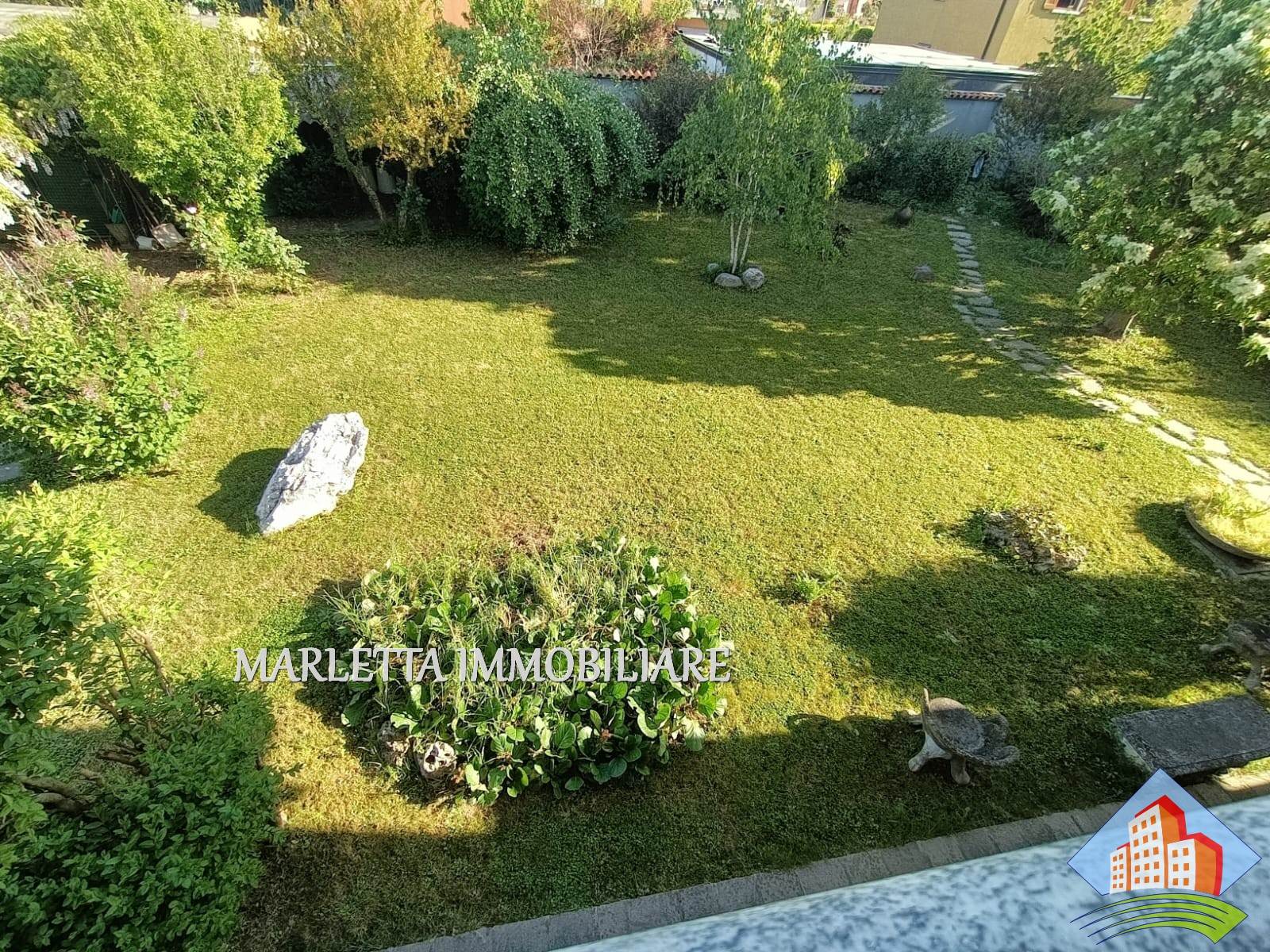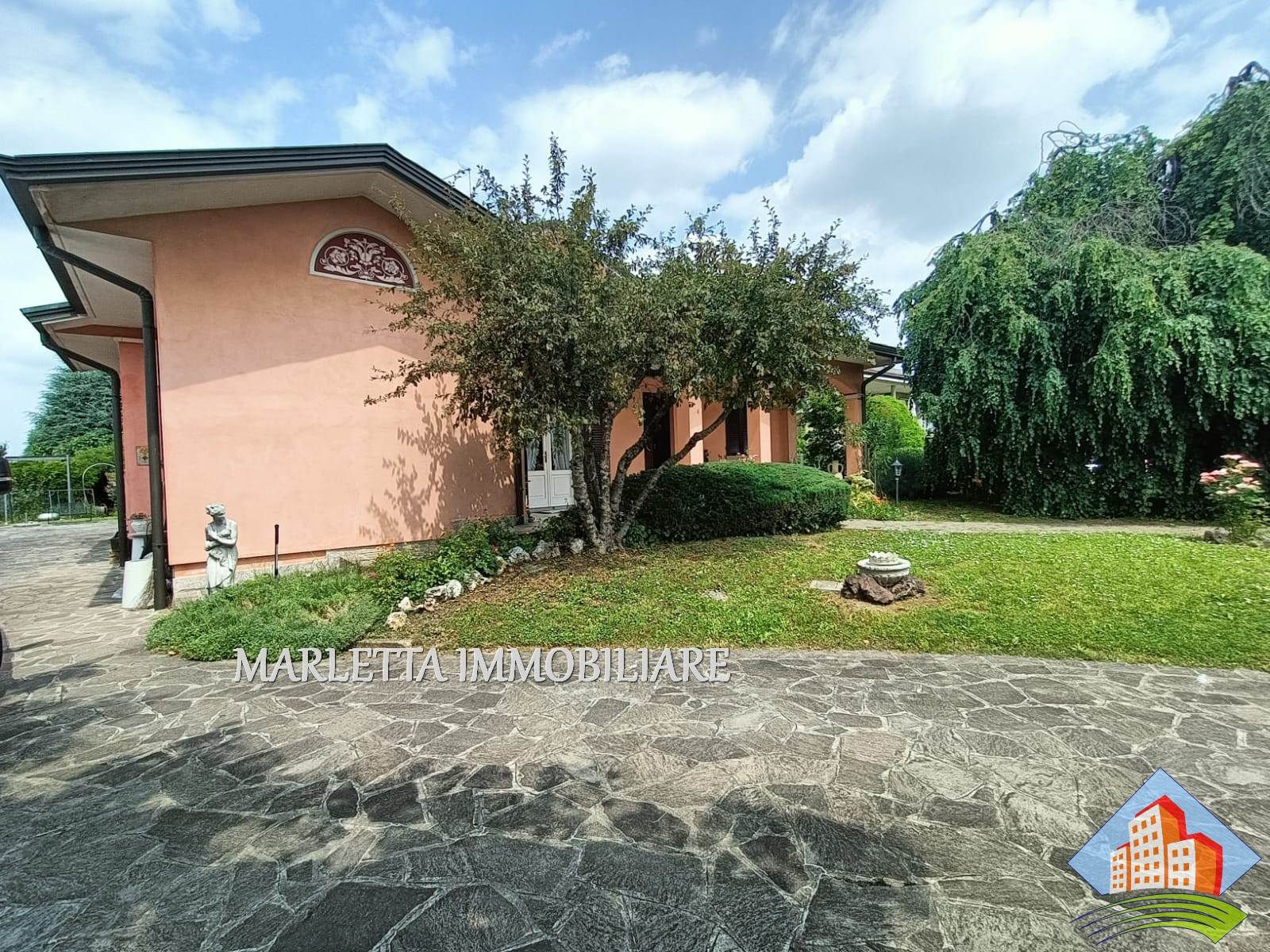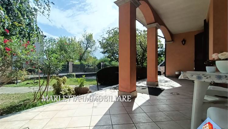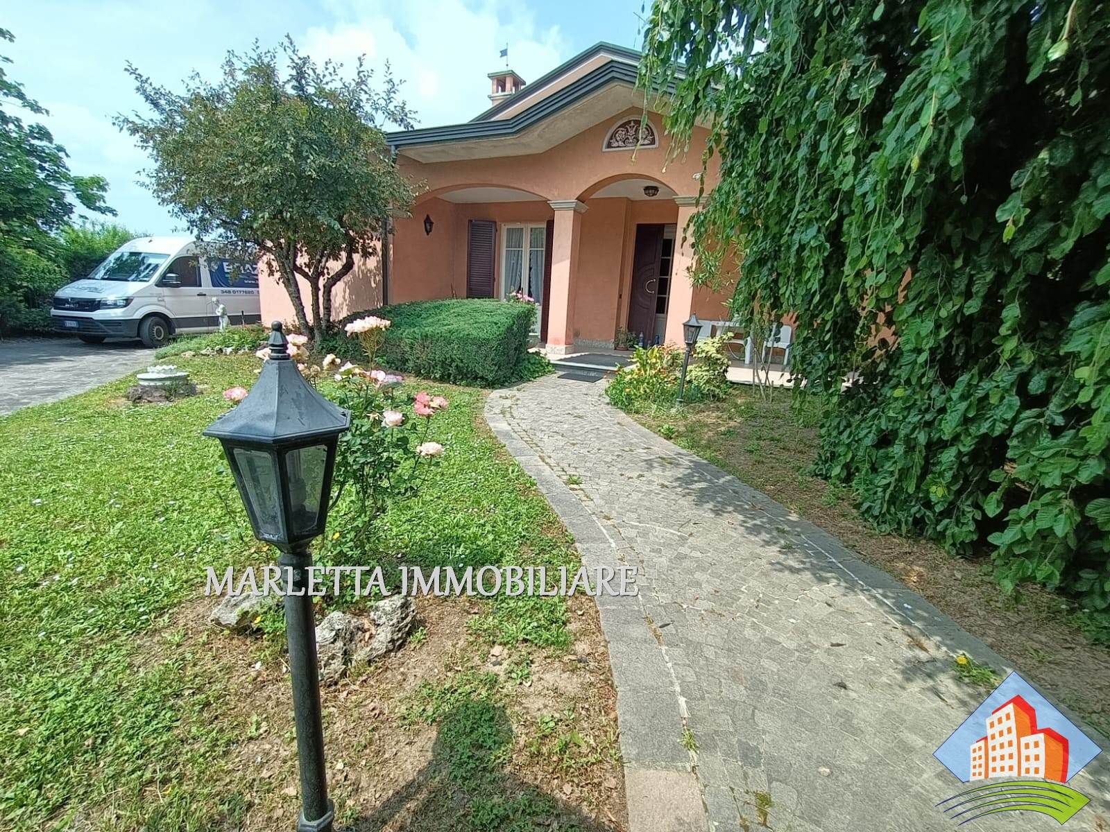 Villa unifamiliare con florido giardino piantumato libera su 4 lati, in centro paese ma in zona tranquilla e ben servita. L'abitazione con ambienti spaziosi e luminosi è ben suddivisa. Dall'ingresso a piano terra si accede direttamente all'ampio soggiorno doppio con camino ventilato, vi sono finestra e porta finestra, cucina abitabile con uscita sul bellissimo e grande portico frontale. Con porta separata dal soggiorno, un disimpegno conduce nella zona notte con due camere matrimoniali, una delle quali dotata di porta finestra con affaccio su terrazzino, vista giardino, esposto a ovest, bagno padronale finestrato con vasca, lavabo rivestito in marmo-resina più comodo ripostiglio. Dal soggiorno, tramite due gradini, si accede ad altro disimpegno per una utile lavanderia con locale tecnico anch'esso con uscita sotto Il portichetto, secondo bagno finestrato con doccia e box doppio di 34 mq, finestrato e con basculante motorizzata. Una bella scalinata dal soggiorno. sale nella zona sottotetto, grandi spazi mansardati da utilizzare a piacimento, stanze alte e rifinite, attualmente suddivise in due ambienti finestrati, ben areati. Presente split per aria condizionata e anche un balcone, disponibile ulteriore ripostiglio. Al piano interrato con accesso diretto dal box si trova una comoda cantina di circa 16 mq . In giardino inoltre, in zona retrostante, è presente un rustico di mq.17. Vi è la possibilità di ulteriore ampliamento esterno con area già edificata e realizzare una bella piscina . La casa è dotata di impianto di riscaldamento con caldaia a gas metano installata nel locale lavanderia e con radianti (termosifoni), l’impianto è suddiviso in tre zone: P.T. Zona Giorno, Zona Notte e piano sottotetto Mansardato. L’impianto è completato con sistema di raffrescamento. Impianto di Videocitofono. Impianto di irrigazione. Villa ultimata nel 1995, sempre stata abitata da unico proprietario, presenta elementi di pregio quali camino in marmo rosso Verona, scala di accesso al piano mansardato rivestita in beola e ringhiera decorata in ferro, elegante bagno padronale. La zona notte è pavimentata in parquet. Serramenti esterni in legno Mogano e doppi vetri con zanzariere; Parziale presenza di inferriate alle finestre del pianto terra. Le porte interne sono in ottimo legno Mogano laccato. accesso alla villa tramite cancellino pedonale e ampio cancello carrabile motorizzato. Una soluzione prestigiosa assolutamente da vedere! Per visionare questo immobile contattateci ai nostri recapiti telefonici o per informazioni ufficio 037341126 o inviateci un messaggio tramite WhatsApp o mail. Vendere e comprare casa potrebbe esser un sogno e vorremmo aiutarti a realizzarlo. Se voleste vendere la vs casa, siamo a disposizione per una valutazione gratuita o consulenze specifiche.