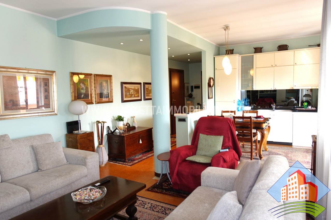 - P2(con ascensore): Ingresso, grande soggiorno e cucina a vista openspace, disimpegno con armadiature, ampio bagno con doccia e zona lavanderia, una cameretta e una camera matrimoniale. Grande balcone che serve l' abitazione lungo tutto il suo sviluppo.