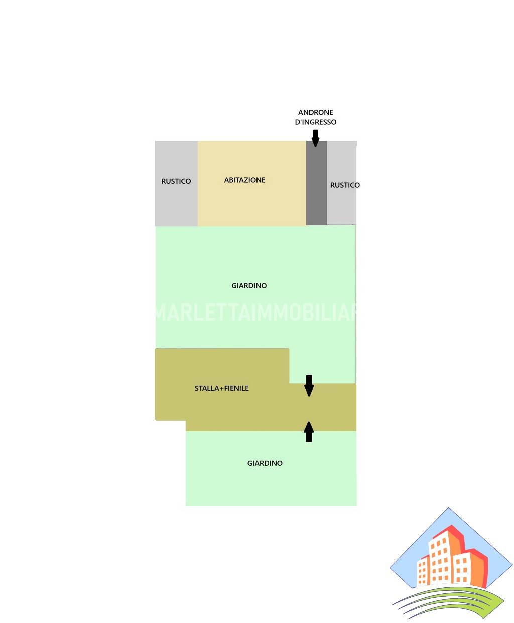 La proprietà include anche un secondo fabbricato rustico di circa 250 mq, ex stalla con fienile, con grande porticato. Previsto già un possibile piano di recupero per trasformarlo in 4 villini indipendenti.